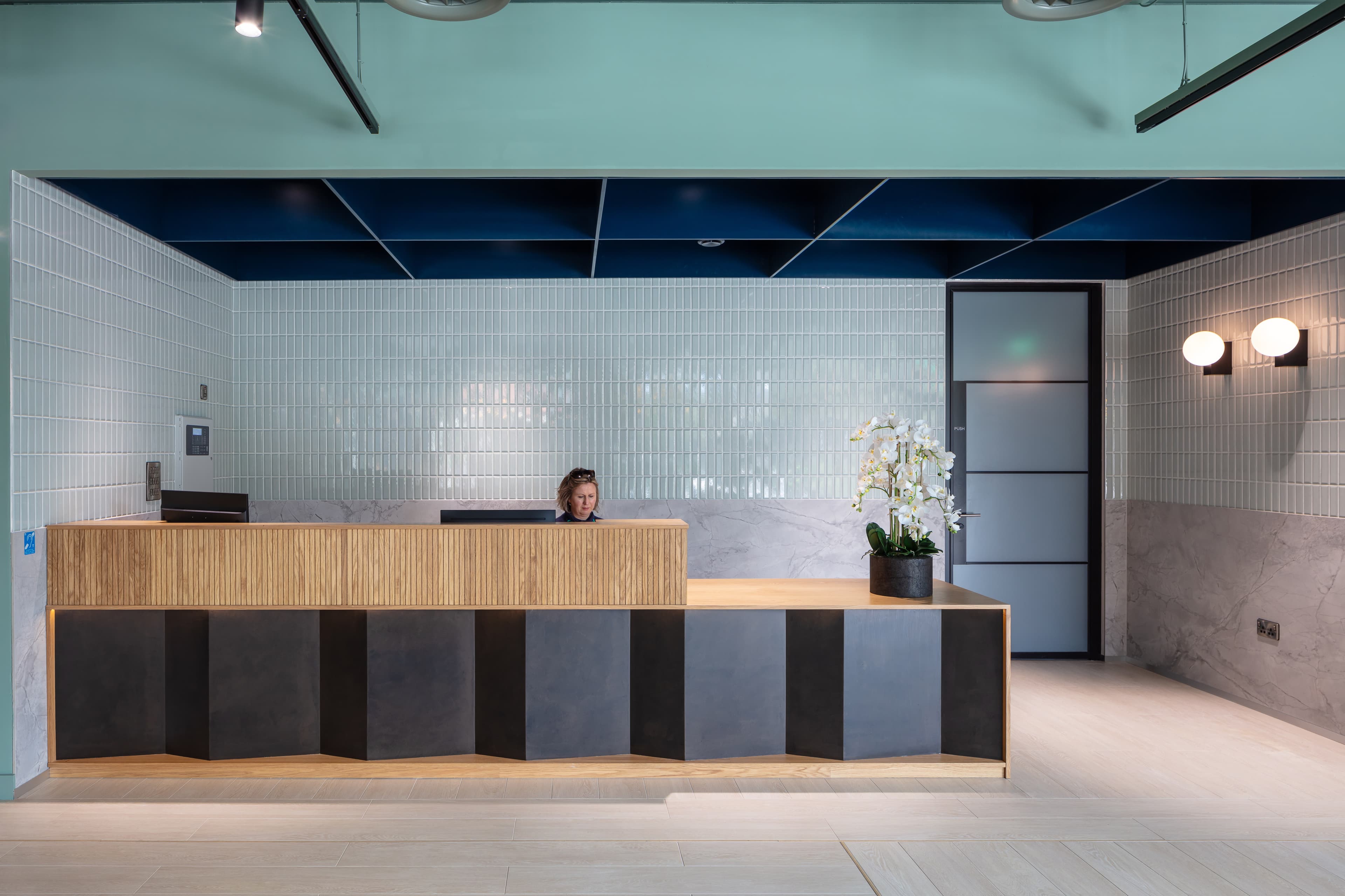 To resolve the challenge of an island site, parking and a principal entrance plaza are located at grade, while new pedestrian routes and landscaped gardens at first floor level link the various blocks and offer a sense of place to residents. The entrance plaza is formed by office and amenity spaces, screening the parking and fostering active use.