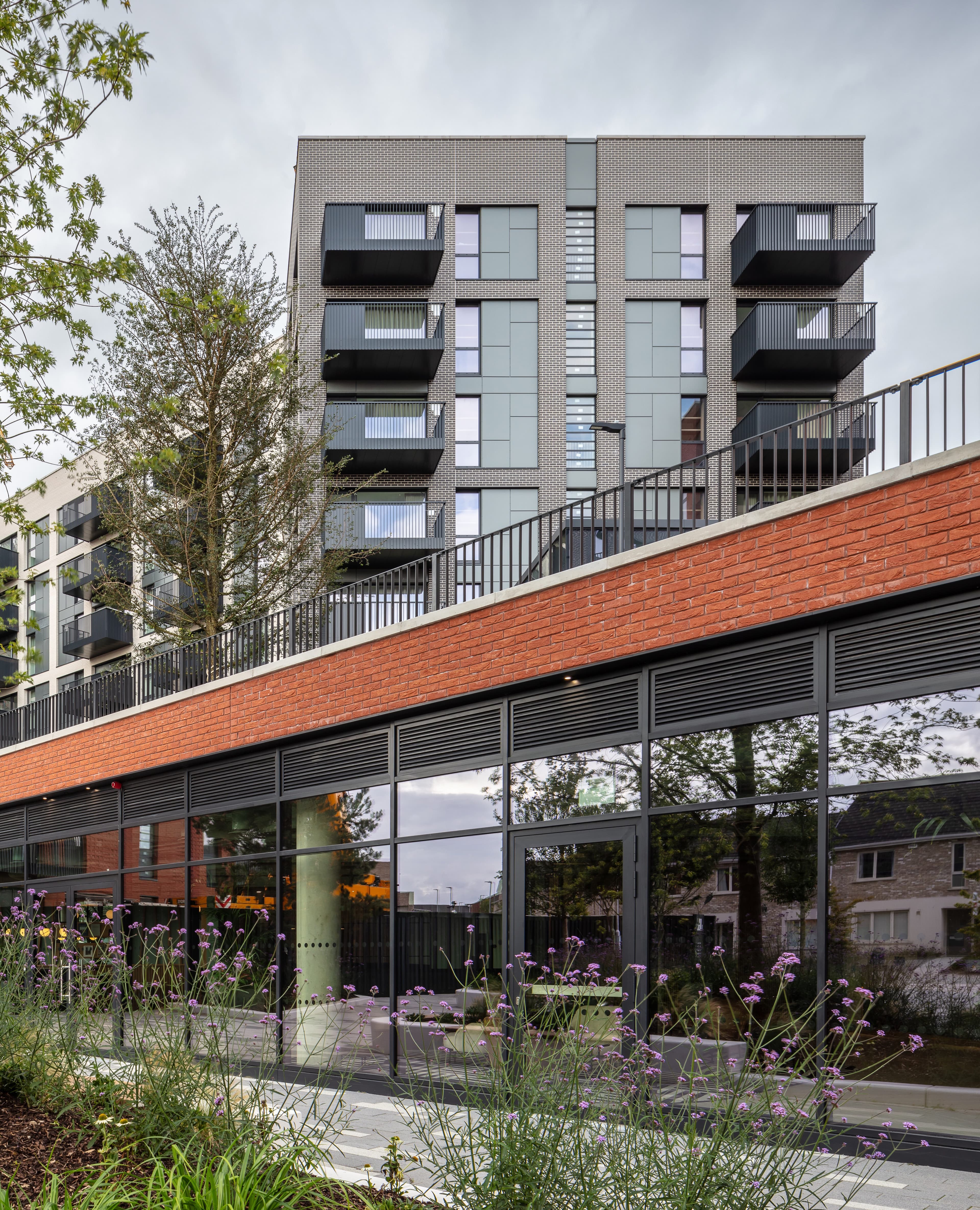 Building facades are subtly articulated to provide shadow and depth, and finished in a range of warm brick colours to provide visual variety.