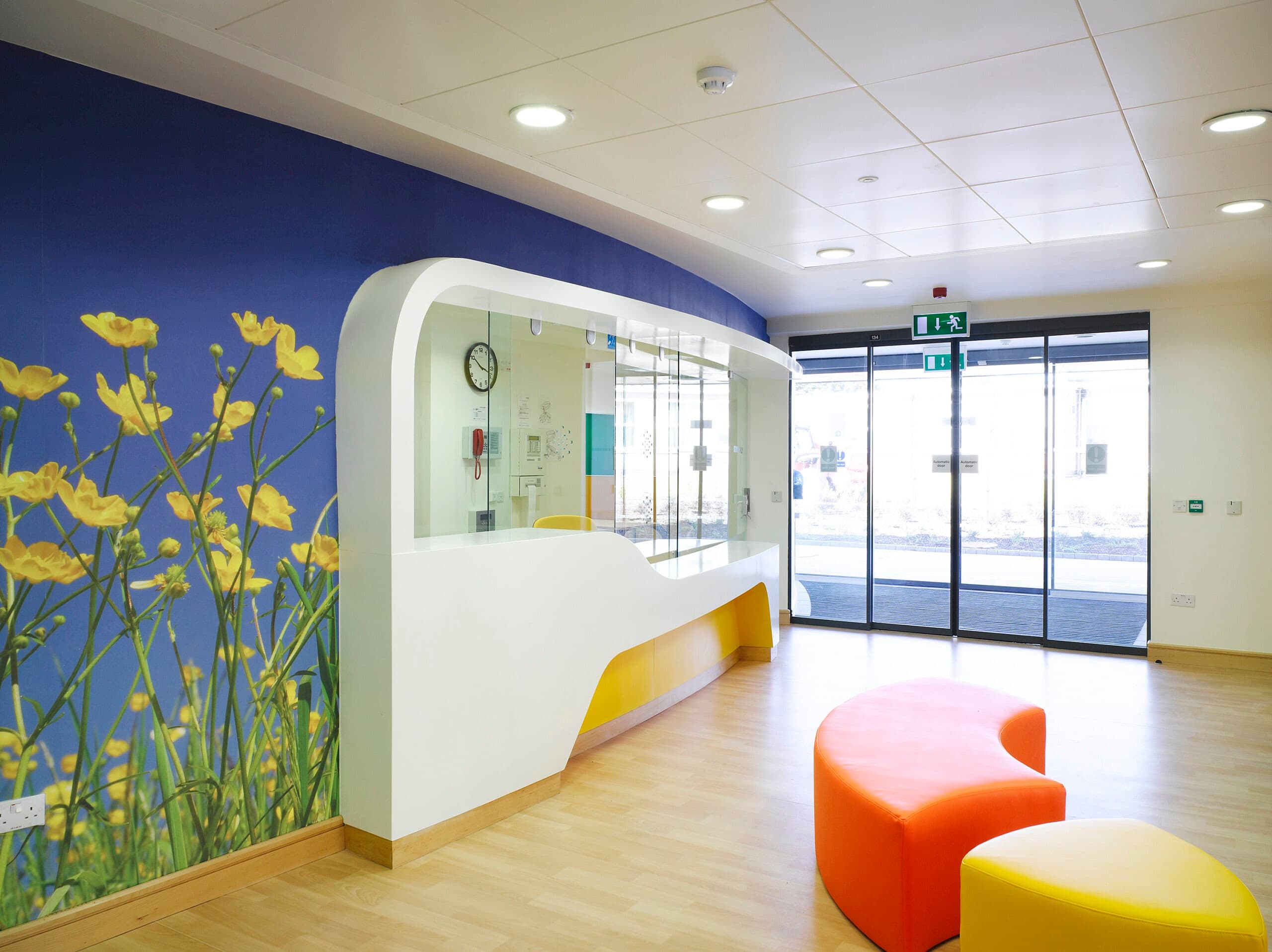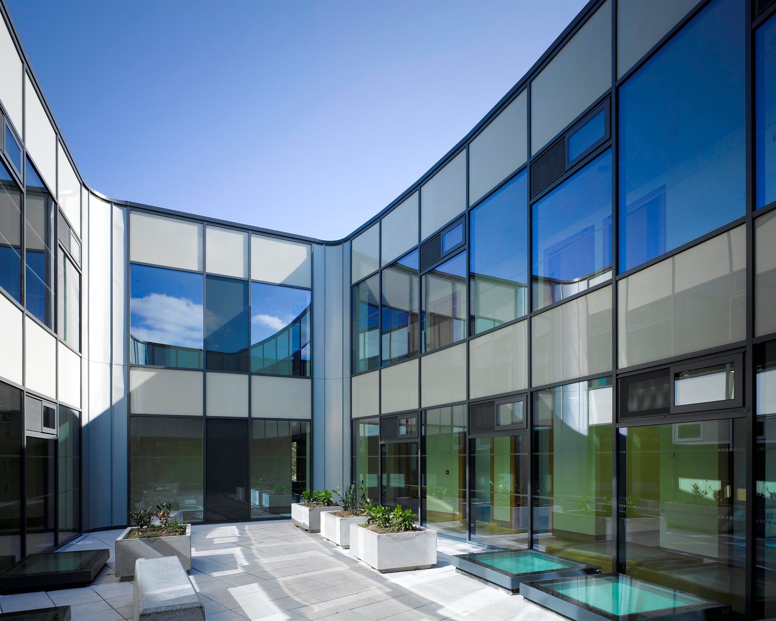 Natural light and ventilation are maximised to help achieve therapeutic internal environments while providing views out to the Dublin mountains. These are complemented by landscaped winter gardens and courtyards. The internal décor follows through on the overall theme with the use of bright colours and wall-art based on nature.