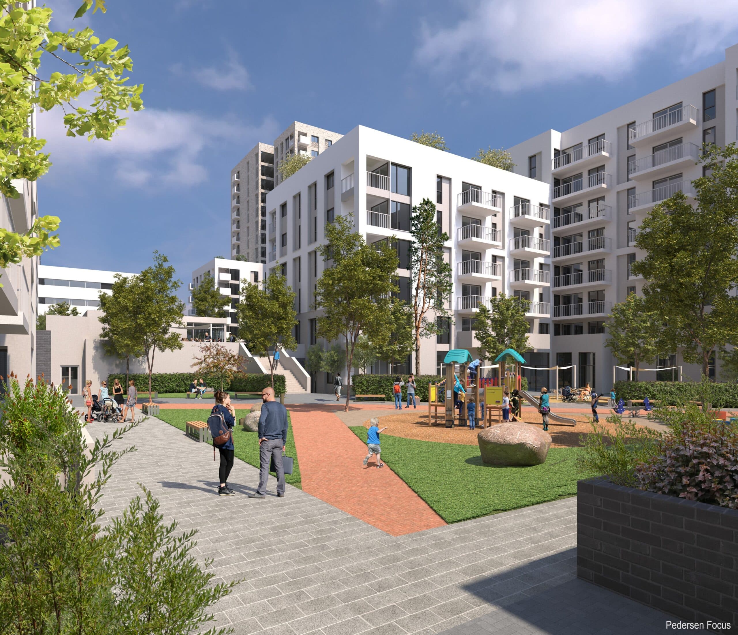 Conceived as a new quarter, incorporating a series of character areas that provide new urban spaces, residential courtyards, parkland and a town square addressed by a 15-storey landmark residential tower.
