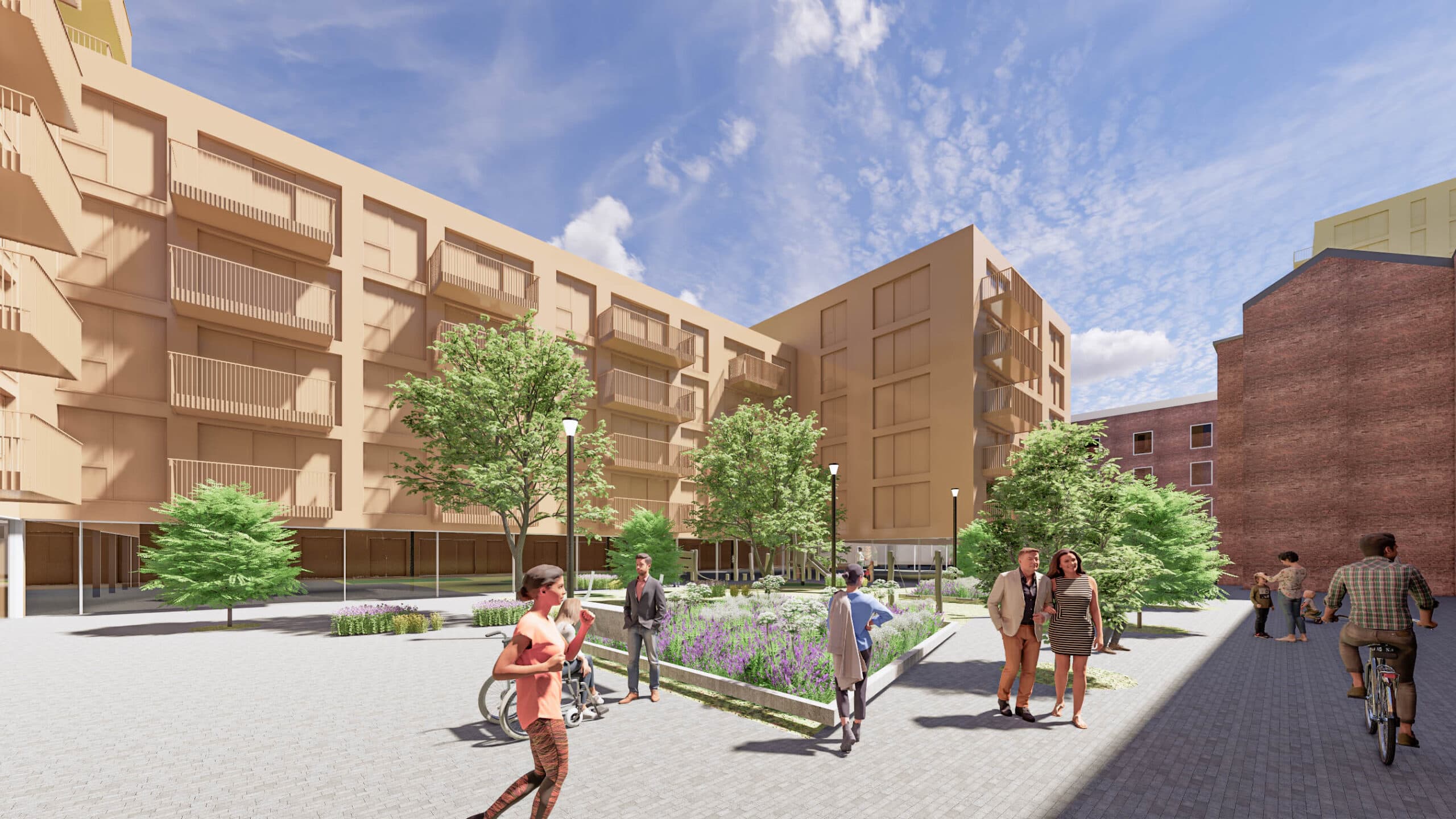 Opportunities for the neighbourhood are planned around a series of public spaces that will create a safe walkable neighbourhood within a diverse and rich historical setting. New homes will be multigenerational, sustainable and arranged around newly formed squares, courtyards and green infrastructure for the local communities.