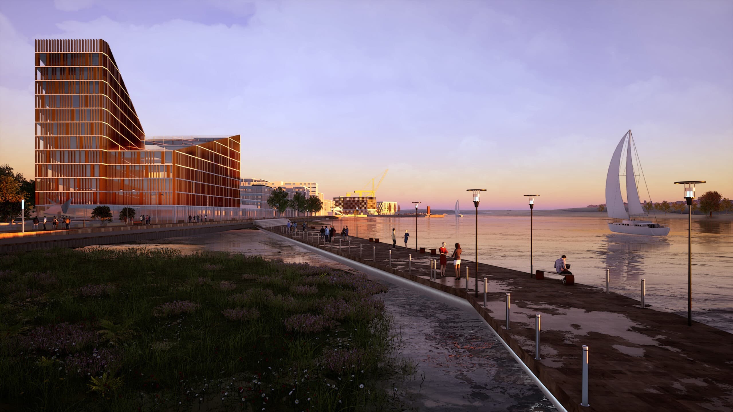 Reddy Architecture + Urbanism, in collaboration with Tyrens, led an international design team to develop the masterplan framework. This plan will accommodate a population of 11,000 residents and a working population of up to 4,000, effectively creating a new town. The development will be built in six phases over 20 to 25 years, in line with the relocation of port activities.